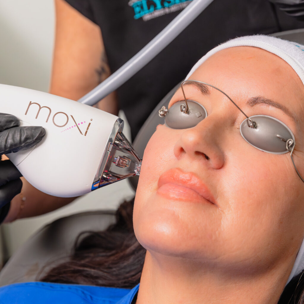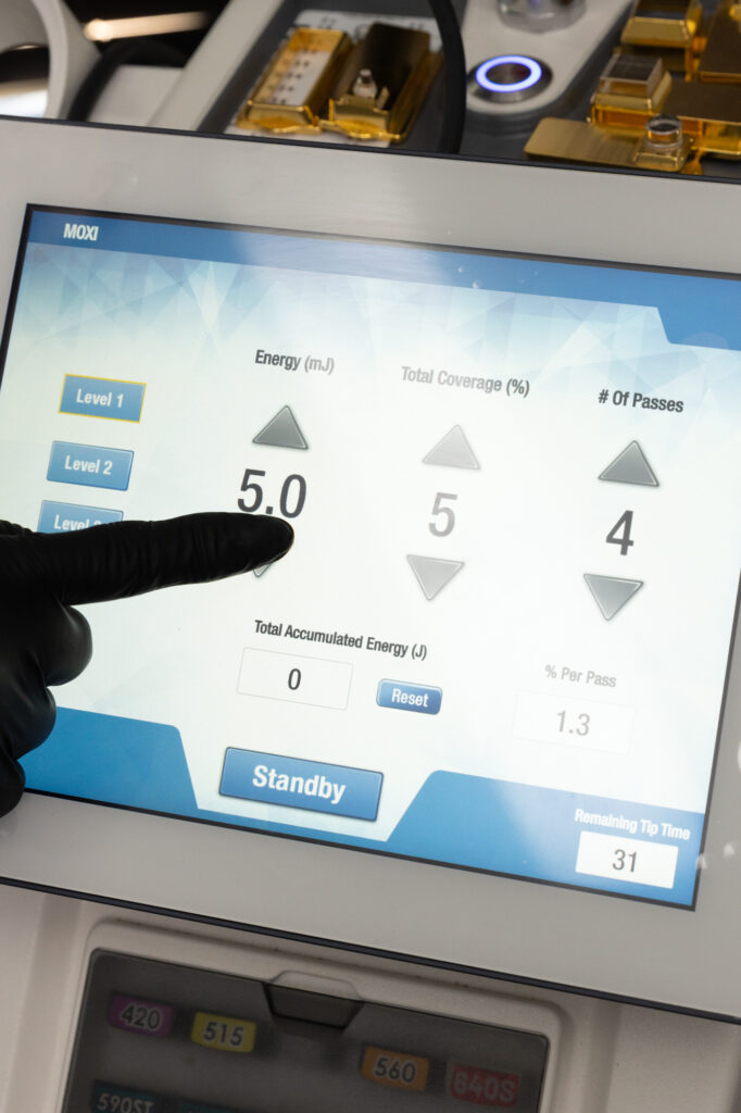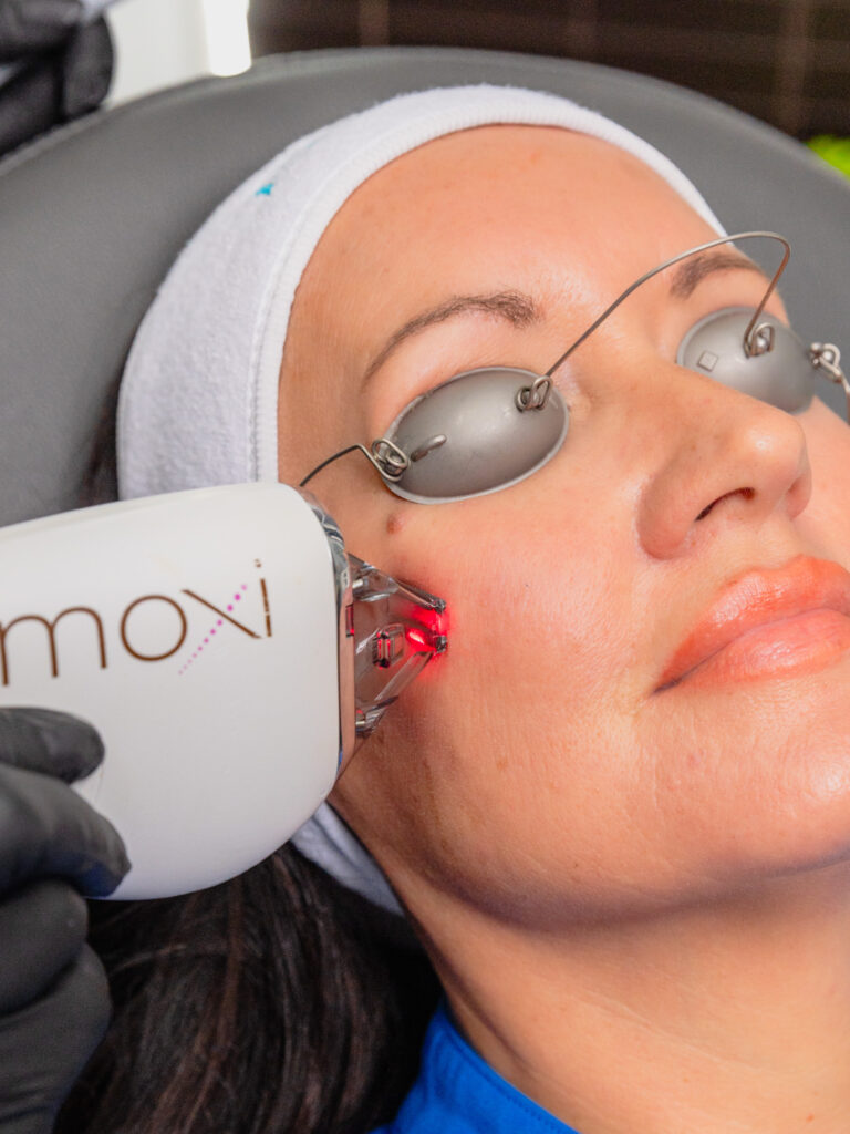 Moxi laser resurfacing uses gentle, fractionated laser energy to create thousands of tiny micro-coagulation zones in the skin’s surface. These microscopic injuries trigger your body’s natural healing process, which increases collagen and elastin production over time. As fresh skin cells replace the old, your complexion becomes smoother, brighter, and more even.